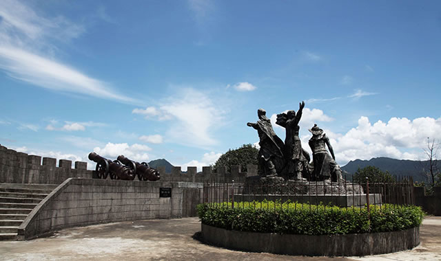 西炮臺公園位于蒙山縣城西面的團(tuán)冠嶺上。團(tuán)冠嶺曾經(jīng)是太平天國西王蕭朝貴駐軍之地,在這里筑城墻、設(shè)大炮,北拒來犯的清軍。2001年,縣政府投資1200萬元,在該地建設(shè)成西炮臺公園。