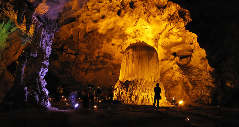 天鐘洞長二千公尺,洞廳高大,廓道迂回。鈣化堆積物發(fā)育良好,形態(tài)逼真生動,且洞內道路平坦,可觀性強。洞內鐘乳石多酷肖動物,有鱷魚廳,金雞廳、百獸廳和犀牛廳等。