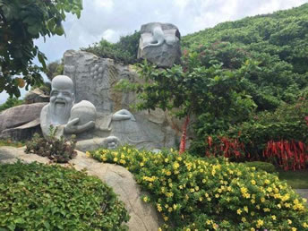 南山是座吉祥的山,在老百姓的心目中南山與長(zhǎng)壽密切相關(guān),是真正意義上的壽山。中國(guó)稱(chēng)作南山的地方很多,如廣東的潮州、福建的莆田、四川的大足、陜西的西安等地都有南山。最著名的南山當(dāng)數(shù)青海東都境內(nèi)的南山,見(jiàn)于《中國(guó)名山大川辭典》(1992年,山東教育出版社)。但大小洞天所在的南山卻非常獨(dú)特;其一,這是中國(guó)最南部的山,是名副其實(shí),名正言順的南山;其二,南山大小洞天被視為南海的”洞天福地”!倍刺旄5亍笔堑兰译[居和修煉長(zhǎng)生不老的地方,也是神仙真人之治所,是理想中長(zhǎng)壽之地;其三,中國(guó)第三次、第四次人中普查結(jié)果顯示:海南的人口平均壽命最高,而三亞市的人口平均壽命為海南之首,南山又為三亞之最,現(xiàn)存86歲以上的老人達(dá)幾百人之多,可見(jiàn)這里是實(shí)實(shí)在在的福澤之地,長(zhǎng)壽之鄉(xiāng);其四,南山大小洞天一帶集中分布有能成活數(shù)千年的長(zhǎng)壽樹(shù)--被美喻為”南山不老松”的龍血樹(shù)。龍血樹(shù)屬龍舌蘭科常綠植物。白堊紀(jì)恐龍時(shí)代就已出現(xiàn),被稱(chēng)為植物中的活化石,世界科教文組織列為保護(hù)樹(shù)種。中國(guó)亦定其為珍稀瀕危植物,屬?lài)?guó)家二級(jí)重點(diǎn)保護(hù)樹(shù)種,主要分布于熱帶、亞熱帶軒區(qū),F(xiàn)今,此樹(shù)種已瀕臨滅跡,但在三亞南山一帶卻生長(zhǎng)著三萬(wàn)株之多,主要集中于南山大小洞天旅游區(qū),樹(shù)齡逾千年的有兩千多株,最長(zhǎng)的有六千年以上。福澤之地,養(yǎng)育千年古樹(shù);神足之山,氤氖萬(wàn)古精靈。人們有足夠的理由相信,南山是長(zhǎng)壽之鄉(xiāng),”壽比南山”在這里當(dāng)之無(wú)愧!眽郾饶仙讲焕纤伞闭沁@一景區(qū)的真實(shí)寫(xiě)照。