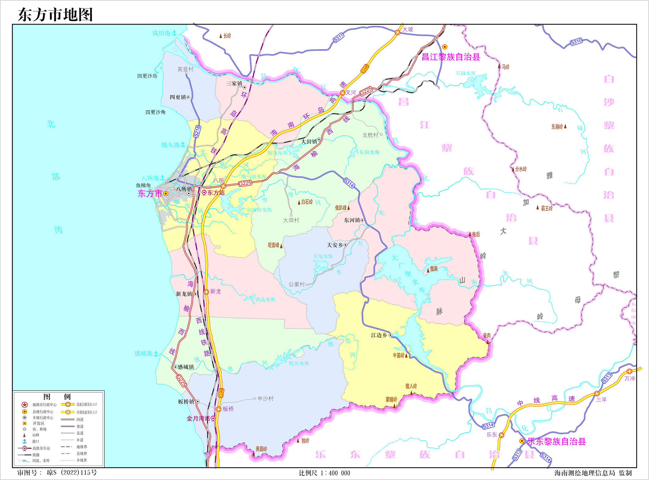 東方市下轄8個(gè)鎮(zhèn)、2個(gè)鄉(xiāng)、1個(gè)農(nóng)場: