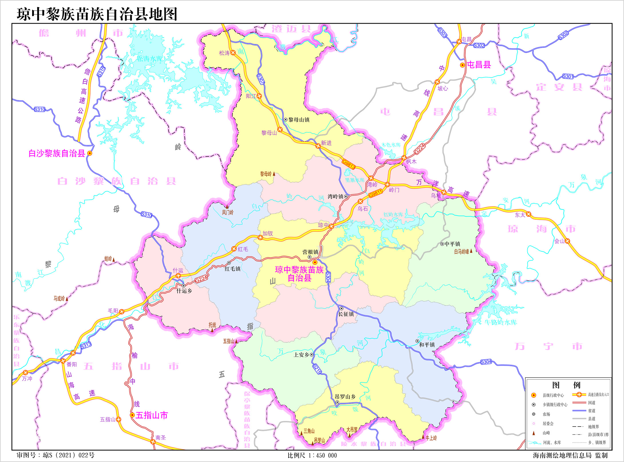 鎮(zhèn):營(yíng)根鎮(zhèn)、灣嶺鎮(zhèn)、黎母山鎮(zhèn)、和平鎮(zhèn)、長(zhǎng)征鎮(zhèn)、紅毛鎮(zhèn)、中平鎮(zhèn)