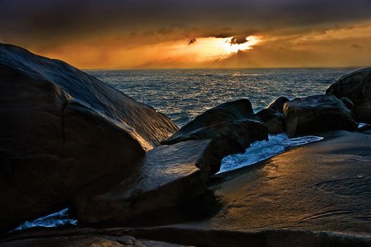 文昌石頭公園位于海南省文昌市龍樓鎮(zhèn),以銅鼓嶺為中心,是海南的最東角,公園沿海長(zhǎng)2公里,是數(shù)萬(wàn)年前造山運(yùn)動(dòng)隆出地表的石頭,經(jīng)漫長(zhǎng)歲月潮汐的拍打雕刻和風(fēng)化而成的海蝕地貌。這里屬于基巖海岸,巖石為花崗巖,花崗巖內(nèi)有變質(zhì)巖侵入體,許多巖石中有很多漂亮的條紋和圖案,地貌類型為海蝕地貌,具體表現(xiàn)為海蝕平臺(tái)、海蝕崖、海蝕柱、海蝕穴等。