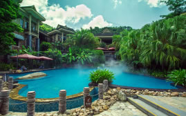 呀諾達(dá)雨林一號(hào)度假酒店坐落在呀諾達(dá)雨林文化旅游區(qū)核心區(qū)域雨林谷內(nèi),設(shè)計(jì)理念以尊重自然為原則,低碳環(huán)保節(jié)能為導(dǎo)向,有23間(套)豪華客房,所有客房均配有帶衛(wèi)星頻道的液晶電視、帶免費(fèi)寬帶的電腦、直撥電話、私人保險(xiǎn)箱、迷你酒吧等設(shè)施,還配套有中餐廳、西餐廳、棋牌室、戶外泳池、溫泉泡池等,以及1間多功能廳。