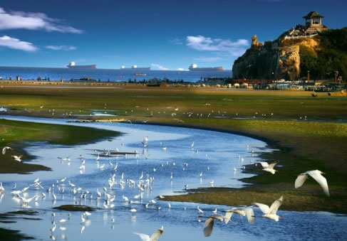 北戴河景區(qū)地處河北省秦皇島市北戴河區(qū)東部沿海,東北至鴿子窩公園,是著名的觀鳥(niǎo)勝地,被譽(yù)為"觀鳥(niǎo)的麥加"。這里有6600多公頃森林,50多畝濕地,戴河、恒河等入海口形成的泥灘、瀉湖以及滯緩的河道,被國(guó)際濕地保護(hù)公約命名為"北戴河濕地",并受到國(guó)家保護(hù)。