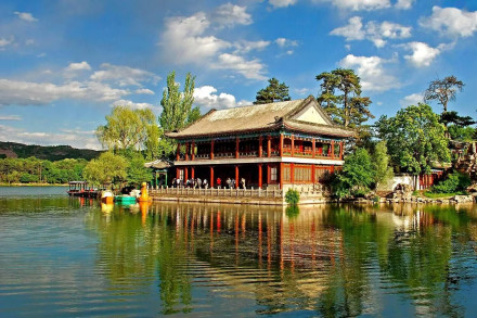 松鶴齋寓意“松鶴延年”,供太后居住,建于乾隆年間;萬(wàn)壑松風(fēng)是清帝批閱奏章和讀書(shū)處,是宮殿區(qū)與湖區(qū)的過(guò)渡建筑,造型與頤和園的諧趣園類似;東宮在宮殿區(qū)最東面,原為清帝舉行慶宴大典的場(chǎng)所,后毀于戰(zhàn)火。