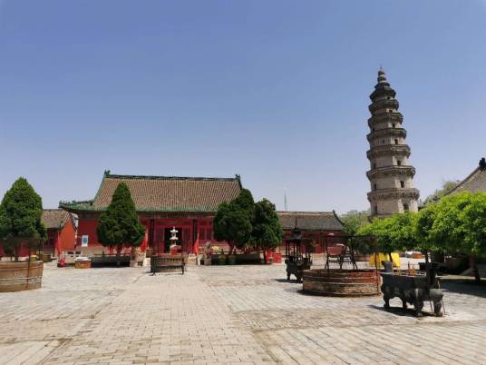 寶云寺內有一塔,高36.5米,塔體為八面棱錐體磚木結構,自四層以上四面有門,塔的各層建筑風格各異,或成鴛鴦斗拱,或成梅花斗拱,雄渾古樸,氣勢磅礴。若登塔頂,需有一定的勇氣,因為每登一層都要繞塔沿半圈,找到另一側的入口。寶云塔原名擎天塔,位于衡水市區(qū)西南的舊城村東。該塔原在寶云寺內,因此稱寶云塔。