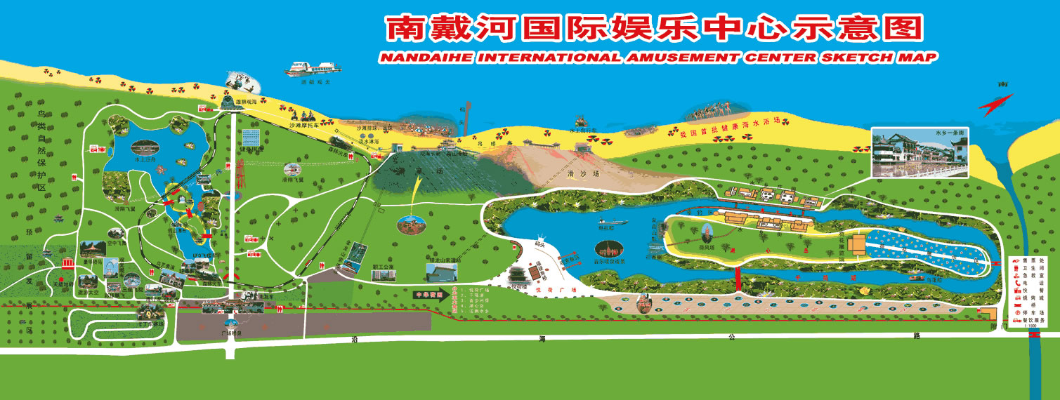 南戴河國(guó)際娛樂(lè)中心包含歡樂(lè)大世界、碧海金沙、金龍山、中華荷園、槐花湖五大區(qū)域。這里遠(yuǎn)離污染,環(huán)境清幽,空氣清新,植被蔥郁,完全具備了當(dāng)今國(guó)際海岸旅游的五大要素:海洋、沙灘、陽(yáng)光、空氣、綠色。