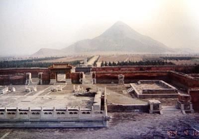 入關第一帝世祖順治皇帝的孝陵位于南起金星山,北達昌瑞山主峰的中軸線上,其余皇帝陵寢則以孝陵為中軸線按照“居中為尊”、“長幼有序”、“尊卑有別”的傳統(tǒng)觀念依山勢在孝陵的兩側呈扇形東西排列開來。各陵按規(guī)制營建了一系列建筑,總體布局為"前朝后寢"!鞍俪邽樾,千尺為勢”的審美思想貫穿于每一座陵寢建筑中。