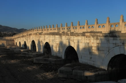 拱形橋在石橋中是等級最高的一種。七孔拱橋在清東陵只孝陵有一座。橋長110米,兩側安設石欄板126塊,石望柱128根,抱鼓石4塊。