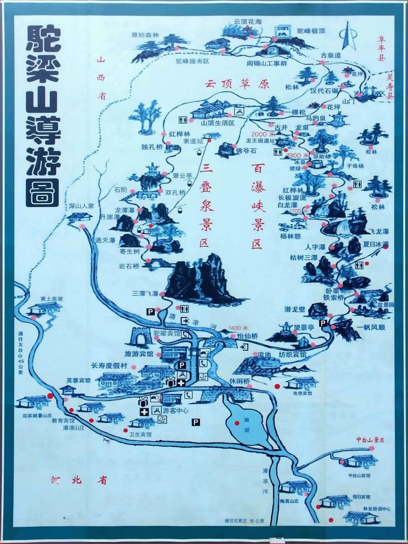 駝梁是連接西柏坡和五臺山圣地最便捷的中轉景區(qū)。來這里旅游不僅能充分領略大自然的韻律和景致,盡情體驗典型的太行民俗風情,還可留宿山莊內(nèi)賓館、高檔別墅或長壽度假村,品位特有的綠色食品莜面、烙餅、大鍋菜,是舉辦居家游情侶游、科考游、生態(tài)游等和登山游等避暑覽勝的極佳去處。