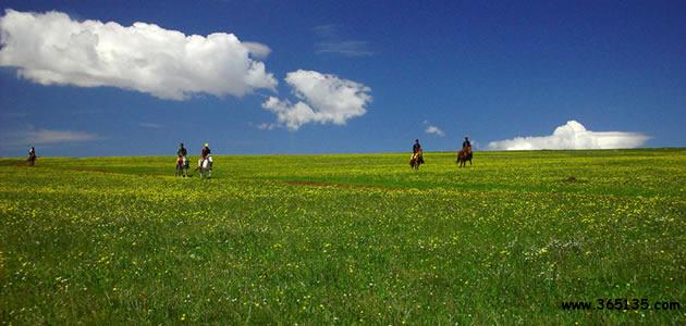 為不存在過度放牧問題,再加上雨量充沛,這里的草顯得更為原始。與草打成一片的爛漫野花,也成了蜜蜂、蝴蝶爭相追逐的目標(biāo),紅色的山丹、白色的銀蓮、粉色的老鸛草以及其他幾十種叫不出名兒的花,從每年的5月至10月輪番上陣,讓空中草原又擁有“空中花園”的美譽。這里有兩種花最為惹人,一個是雪絨花,看似它的白色小花不夠艷麗,但它身份高貴,被瑞士、奧地利、芬蘭等國家奉為國花,對于這種珍稀花種,當(dāng)年馮驥才來到蔚縣空中草原后發(fā)現(xiàn)它竟在此大面積地安家落戶,欣喜地稱這里是“中國雪絨花的故鄉(xiāng)]”。另一種便是野罌粟,雖然名字不大惹人愛,但它生命力強,黃色花瓣格外鮮艷奪目,它們?nèi)缤艚鹣阋话沅佌乖诰G色原野中,場面煞是壯觀。