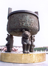 新鄭是鼎器之源,中國最早的鼎器出自八九千年前新鄭的裴李崗遺址。五千年前,新鄭人軒轅黃帝最早將陶鼎炊器制成銅鼎禮器。鼎是物質文明、政治文明和精神文明的象征。其余8鼎,為四方四圓,通高1.25米,獸面紋飾,分別取仕、智、豐、愛、安、嗣、壽、財之名,以八卦之位環(huán)列黃帝寶鼎四周。楹聯(lián)長廊位于黃帝寶鼎壇區(qū)東西兩側,各長150米,寬5米,楹聯(lián)200幅,展示名人大家手筆,歌頌黃帝功績,心系故里,其中多為書法藝術做品。