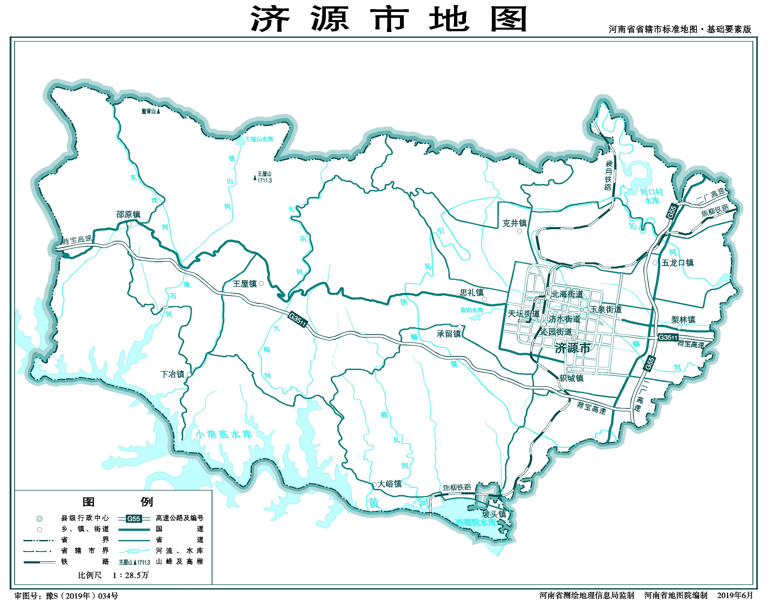 濟(jì)源市轄5個街道、11個鎮(zhèn):
