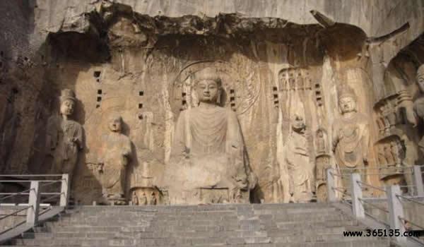 龍門:位于洛陽(yáng)市洛龍區(qū)龍門鎮(zhèn)伊河兩岸。這里“兩山相對(duì),望而若闕。伊河歷其間北流”(水經(jīng)注)所以古 稱伊闕。伊河兩岸的龍門山和香山,石壁峭立,空缺如門,由于處在隋、唐帝都之南故叫龍門。龍門滿山翠柏,瀑布飛泉,長(zhǎng)橋臥空,伊水碧流,尤以龕窟雕飾著稱于世。自古以來(lái),“龍門山色”被譽(yù)為“洛陽(yáng)八大景”之首。龍門石窟開(kāi)始營(yíng)造于北魏孝文帝太和十九年。歷經(jīng)東魏和西魏,北齊和北周,以及隋、唐連續(xù)營(yíng)造達(dá)四百多年之久。以后,五代、北宋、清均有雕造,但為數(shù)甚少。據(jù)龍門文物保管所統(tǒng)計(jì)兩山現(xiàn)存窟龕二千一百多個(gè),佛塔四十多座,大小造像十萬(wàn)余尊,其中最大的高17.14米,而最小的僅有2厘米。龍門石窟規(guī)模宏大,分布于伊河兩岸懸崖峭壁之上的潛溪寺、賓陽(yáng)北洞、賓陽(yáng)中洞、奉先寺、萬(wàn)佛洞、蓮花洞、藥方洞、古陽(yáng)洞、賓陽(yáng)南洞、大萬(wàn)伍佛洞、擂鼓臺(tái)三洞、伊闕佛龕之碑、龍門二十品,總計(jì)長(zhǎng)達(dá)一千多米,內(nèi)容豐富多彩,雕藝精美而超凡。有史以來(lái),它與敦煌石窟、云岡石窟,并稱為我國(guó)三大石刻藝術(shù)寶庫(kù)。一九六一年國(guó)務(wù)院確定龍門石窟為全國(guó)重點(diǎn)文物保護(hù)單位。