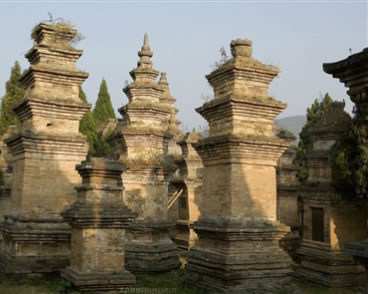 少林寺西約三百米處的少室山腳下,有一片中國(guó)最大的塔林。它南臨少溪,背依龍虎嶺,東接伏牛山脈,西依當(dāng)陽(yáng)坡,林木蔥郁,環(huán)境秀美幽雅,這就是著名的少林塔林,它是少林歷代高僧、住持方丈的墓寢。