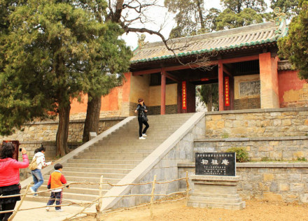 塔林北約一公里為初祖庵。它是河南省遺存文物中最古老的一 座木結(jié)構(gòu)建筑,是為紀(jì)念達(dá)摩面壁而修建的。殿的檐柱、內(nèi)柱、墻下雕石以及神臺(tái)周圍都有浮雕。大殿神龕內(nèi)供著達(dá)摩祖師像。
