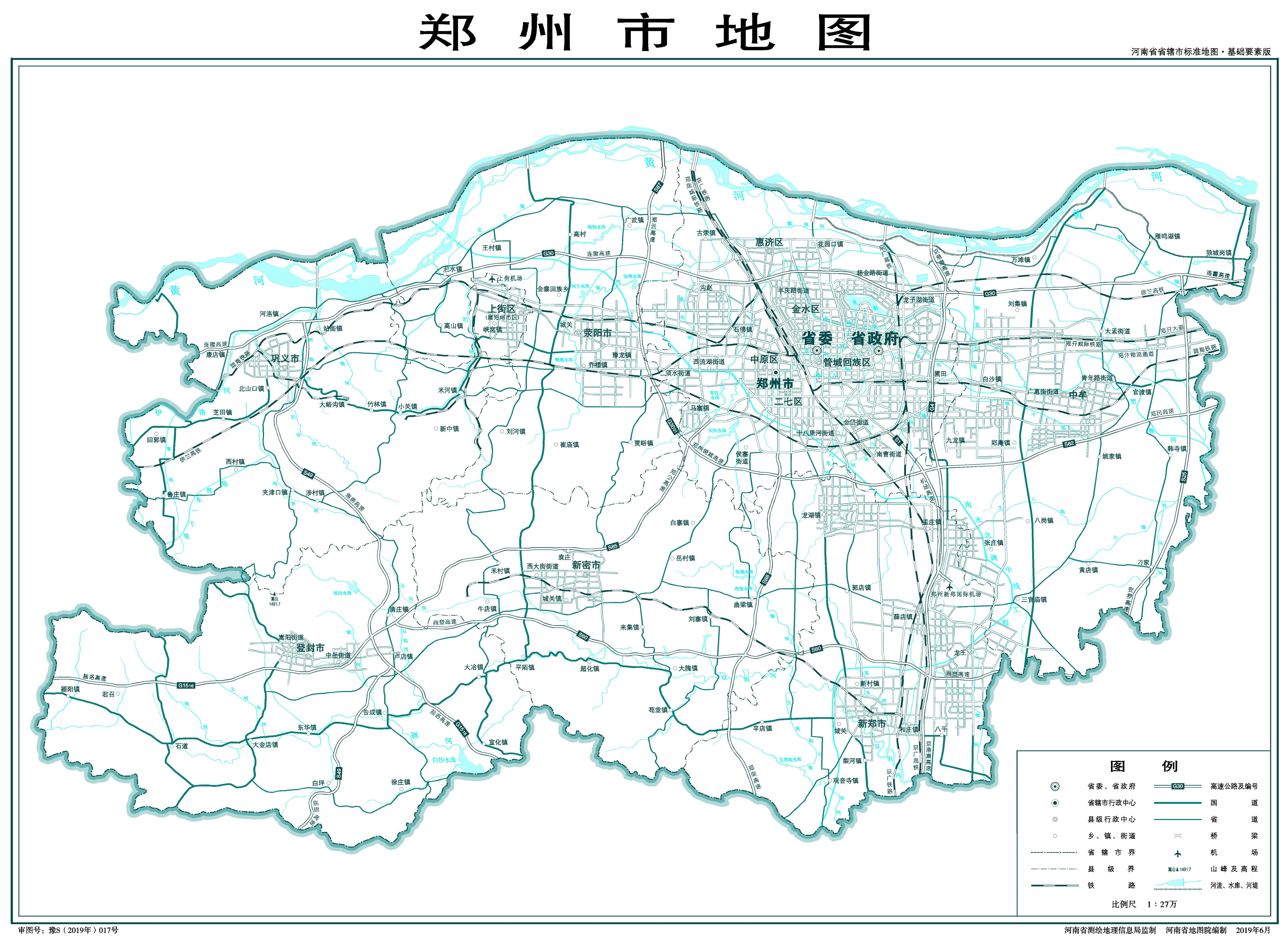 鄭州市轄6個(gè)市轄區(qū)、1個(gè)縣,代管5個(gè)縣級(jí)市: