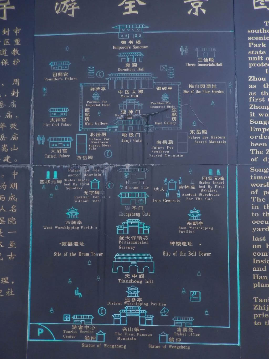 中岳廟沿中軸線依次有中華門,遙參亭、天中閣、崇圣門、化三門、崇高峻極坊、峻極殿、寢殿、御書樓等建筑,共11進(jìn)院落。