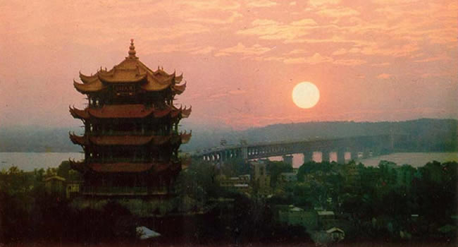 李白寫(xiě)下的詩(shī)詞與黃鶴樓有關(guān)的不下五首,其中有一首《與史郎中欽聽(tīng)黃鶴樓上吹笛》:“一為遷客去長(zhǎng)沙,西望長(zhǎng)安不見(jiàn)家。黃鶴樓中吹玉笛,江城五月落梅花!睆拇耍敖恰北愠蔀槲錆h的美稱(chēng)。