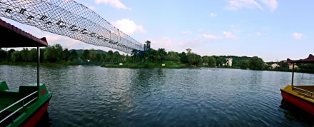 連理湖,三面環(huán)山,一面向沖,水碧林翠,鳥語花香,宛若瑤池,F(xiàn)今,白玉欄桿環(huán)湖而圍,天人閣、合一廊、九曲橋、回眸橋等景觀,與湖光山色渾然一體,成為國內(nèi)獨(dú)一無二的大型水上浪漫婚典勝地,特制的大彩船、小花船上,可舉辦各式婚典。