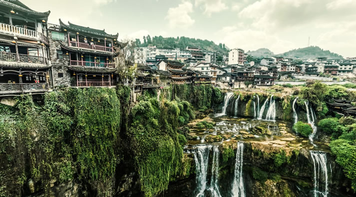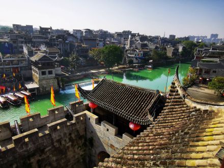 其地處武陵山脈南部、云貴高原東側(cè),因背依的青山酷似一只展翅欲飛的鳳凰而得名。鳳凰古城建于清康熙四十三年(1704年),東門和北門古城樓尚在。城內(nèi)青石板街道、江邊木結(jié)構(gòu)吊腳樓,以及朝陽宮、古城博物館、楊家祠堂、沈從文故居、熊希齡故居、天王廟、大成殿、萬壽宮等建筑,全都透著古城特色。古城現(xiàn)有文物古建筑68處,古遺址116處,明清時代特色民居120多棟,各種廟祠館閣30多座,是中國西南現(xiàn)存文物建筑最多的縣。