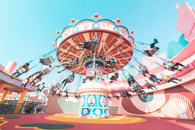 冰淇淋座艙的姓名叫做甜甜杯,旋轉(zhuǎn)飛躍,像是在味蕾上表演愛的魔力轉(zhuǎn)圈圈。