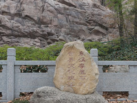 孔望山——位于江蘇省連云港市海州古城城東?淄秸驗榭鬃拥巧酵#蔀橹袊幕穬陨系那昶嫔。錦屏山東北麓,東西長800米,南北寬300米,海拔高度123米,傳說孔子曾登此山而望東海,故名孔望山。道家第七十一福地。唐時此山稱龍興山,南宋防金,又稱巡望山。以豐富的人文景觀而著稱,是國家級風(fēng)景名勝區(qū)、全國重點文物保護單位。