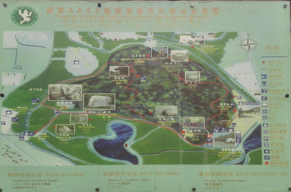 孔子起身離山去,從此留下孔望山。今天的孔望山,山之北有孔望亭,南有望海亭;東有龍洞和龍洞庵;中有象石;西麓的漢代摩崖造像石刻,尤為有名。全山風(fēng)光秀美,古跡遍地,是連云港市著名的風(fēng)景旅游區(qū)。