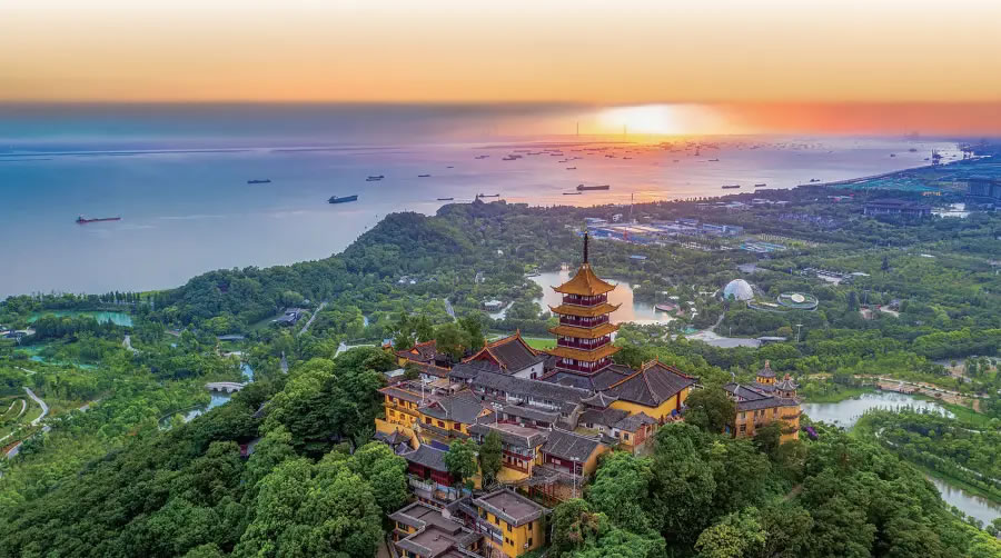 南通狼山則是由海溯江的第一座名山,被稱(chēng)為江海第一山。山高106.94米。狼山是佛教西方三圣之一的大勢(shì)至菩薩的道場(chǎng),山上還供奉著惟一身披龍袍的大圣菩薩,狼山位列佛教八小名山之首。