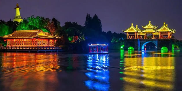 據(jù)介紹,今年瘦西湖“二分明月”夜游活動(dòng)通過“五大亮點(diǎn)”凸顯夜游沿線亮化脈絡(luò):重新打造的長堤春柳亮化,與荷浦熏風(fēng)遙相呼應(yīng),讓游客遠(yuǎn)眺不一樣的“廣陵紅”;徐園、釣魚臺(tái)、鳧莊等經(jīng)典建筑燈光效果再升級(jí),采用氛圍光源,勾勒江南園林“水墨畫”;五亭橋作為瘦西湖的精華、揚(yáng)州城的名片,橋體及周邊亮化更顯特色,突出獨(dú)具魅力“月亮城”;二十四橋在亮化基礎(chǔ)上增加水景表現(xiàn)手法,采用白色燈帶配以冷霧效果,營造如夢似幻“穿越感”;五亭橋旁的1757美食街坊是瘦西湖的網(wǎng)紅打卡地,景區(qū)對其整體亮化進(jìn)行了提升,還特地打造了小型燈光秀,同時(shí)推出網(wǎng)紅“染色燈”“燈光秋千”“感應(yīng)式琴鍵”等互動(dòng)元素,為市民及游客帶來新奇體驗(yàn)。