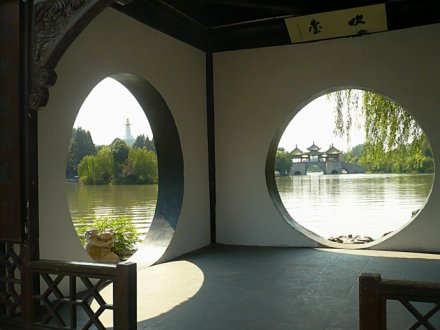 揚(yáng)州是中國的月亮城,揚(yáng)州賞月的地方很多,月觀就是其中之一。月觀坐西朝東,前臨開闊的湖面,每當(dāng)皓月東升,憑欄而立,天上水中的兩個(gè)月亮交相輝映。月觀中的海梅家具也很有特點(diǎn),雕刻的內(nèi)容都和賞月有關(guān)。蓮花、鴛鴦、荷葉,藕節(jié)是揚(yáng)州木雕工藝的代表作品。