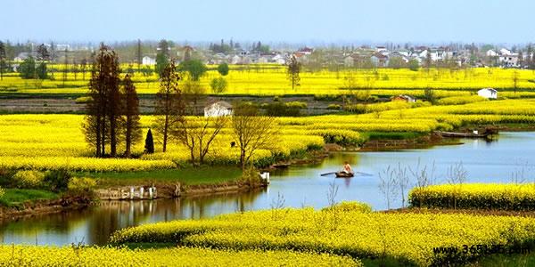 千島菜花風景區(qū):位于江蘇省興化市缸顧?quán)l(xiāng)東旺村東側(cè),總面積近萬畝。 在泥土缺乏的澤國,先民們從水下取土,一方一方使其堆積如垛。千百垛田漂浮于水中,云蒸霞蔚,煞是壯觀。陽春時節(jié),金黃色的油菜花盛開于垛田之上,猶如一朵朵祥云飄舞于水面,又似一片片流霞散落在人間。人們置身于一望無際的千島菜花間,感受隨風而來的醉人菜花香,有心曠神怡之感、美不勝收之慨。