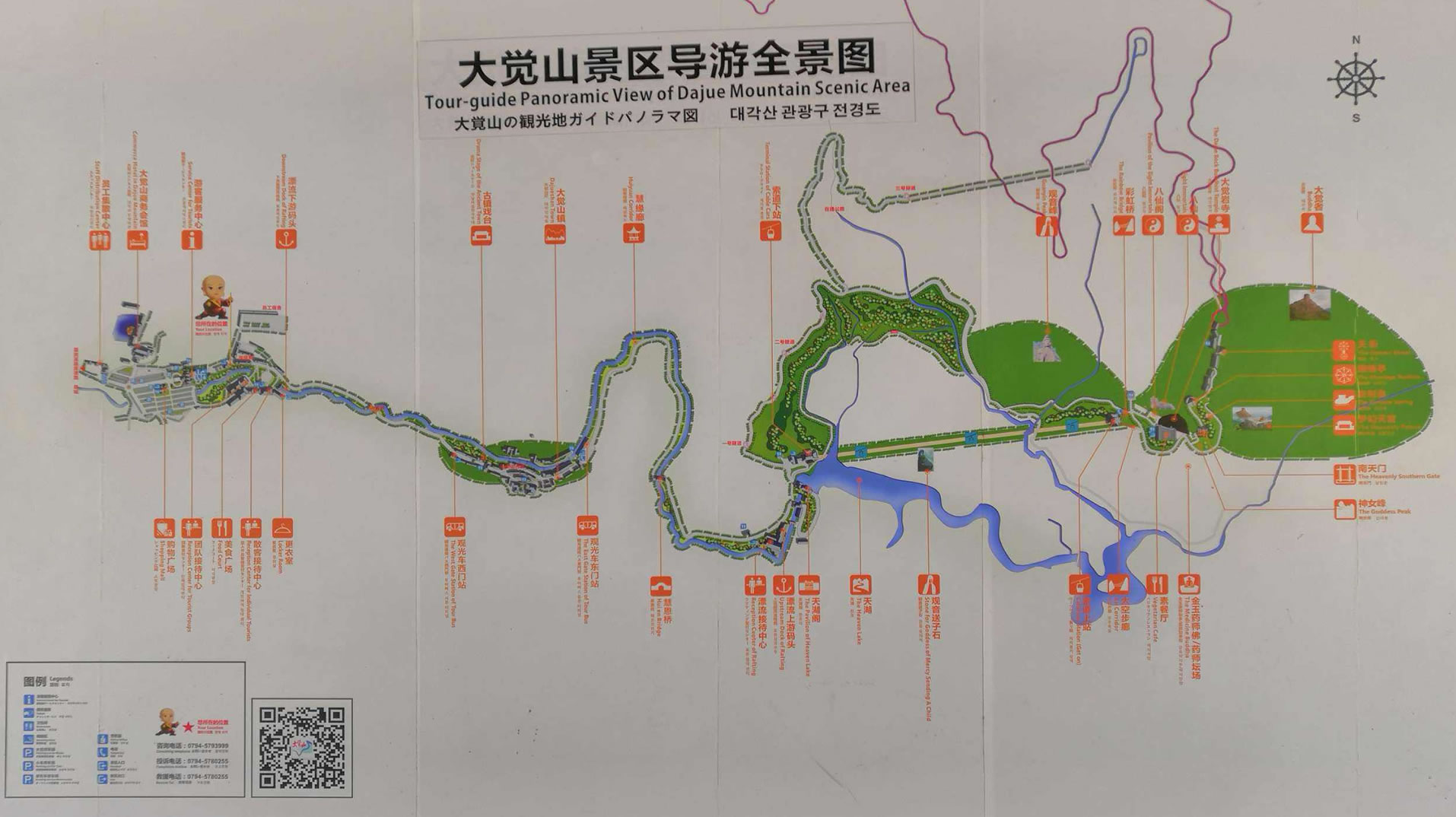 天界位于蓮花山東北部懸崖上方的大佛山。大佛山歷經(jīng)千萬年風(fēng)霜和自然風(fēng)化,此懸崖造型極似佛身,面朝大覺寺,冥冥之中現(xiàn)出神靈,規(guī)劃在此山頂修復(fù)“大覺者”,“大覺者”的重生是天人和諧,天人合一,佛傳百世的祥瑞之兆,也是自然生態(tài)的真實再現(xiàn)。