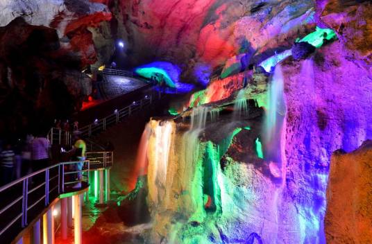 洞內(nèi)常年恒溫18度冬暖夏涼。洞內(nèi)景點(diǎn)多達(dá)一百余個(gè),如:天堂大廳、童子拜觀音、千丘梯田、倒柳垂楊、許愿池、回龍廳等。最為壯觀的是洞內(nèi)的洞天飛瀑,它高九米寬七米,天然瀑布水從九米高的上空直奔洞池,濺起無(wú)數(shù)水花,聲勢(shì)浩大聲撼震天,為此洞一絕。清風(fēng)、怪石、流泉、飛瀑被稱為“洞中四絕”。