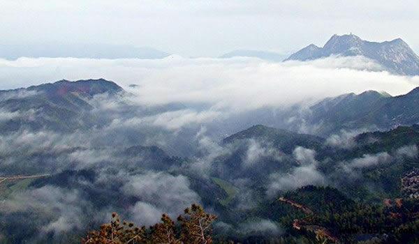五府山:位于上饒縣南部,武夷山北麓。地處亞熱帶,氣候溫暖,雨量充沛,年平均氣溫在14—18℃之間,年平均降雨量在1880毫米,相對濕度為84%,一年無霜期為235天。五府山上的五府崗為上饒縣的最高峰。因其在月明風(fēng)清之夜,臨崗遠(yuǎn)眺,舊制的江西“廣信府”、“饒州府”、浙江“衢州府”、福建“建陽府”、“南平府”等“五府萬家燈火盡收眼底”,五府山因此而得名。