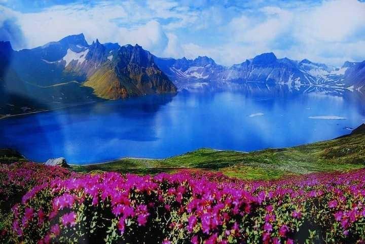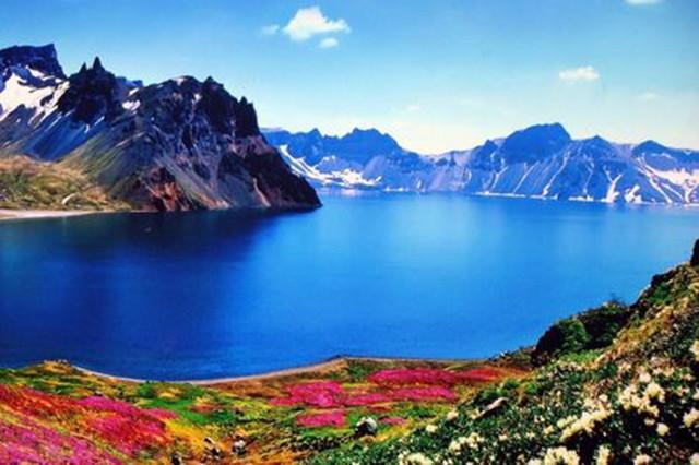 天池湖的水深幽清澈,群峰環(huán)抱的池面五彩斑斕,蔚為壯觀。游覽天池的黃金季節(jié)在盛夏。天池邊上倒映出16座山峰的影子和頭頂上的藍(lán)天,山水相連,水天一色。天池的特別之處和神奇之處在于,它只有出水而沒有入水,卻千年不絕地流淌著。古人說它的水來自海上,故又稱“海眼”。