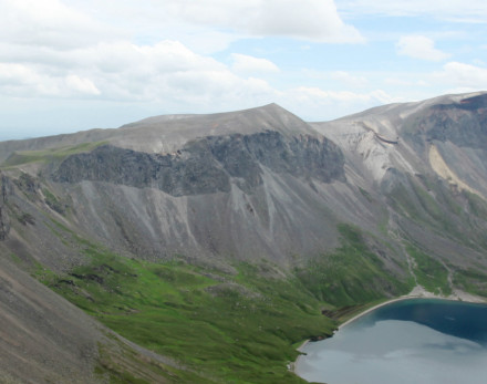 芝盤峰又稱鹿鳴峰,位于天池西偏北,海拔2603米,峰頂由四個(gè)小山峰組成,有“四子會(huì)芝盤”之說。峰頂有草甸,形如圓盤。每到嚴(yán)寒冬季,其他各峰積雪封頂,唯有此峰露在雪外。