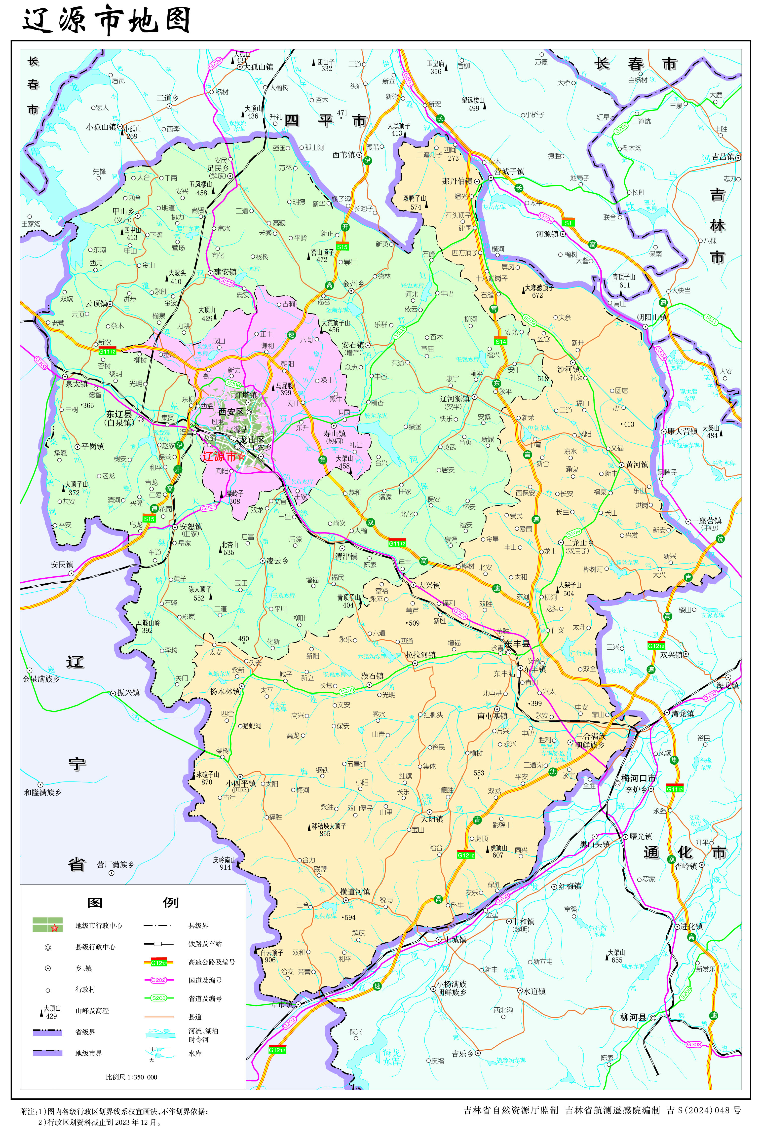 遼源市轄2個市轄區(qū)、2個縣: