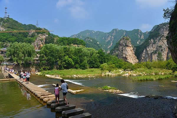 云水渡是冰峪溝風景區(qū)的精華所在,兩岸峭壁秀絕,奇峰怪石林立。其中有一根石柱,高40米,稱之為“中流砥柱”,它周圍的水域叫“龍門潭“,因潭中鯉魚很多,取“鯉魚跳龍門”之意。