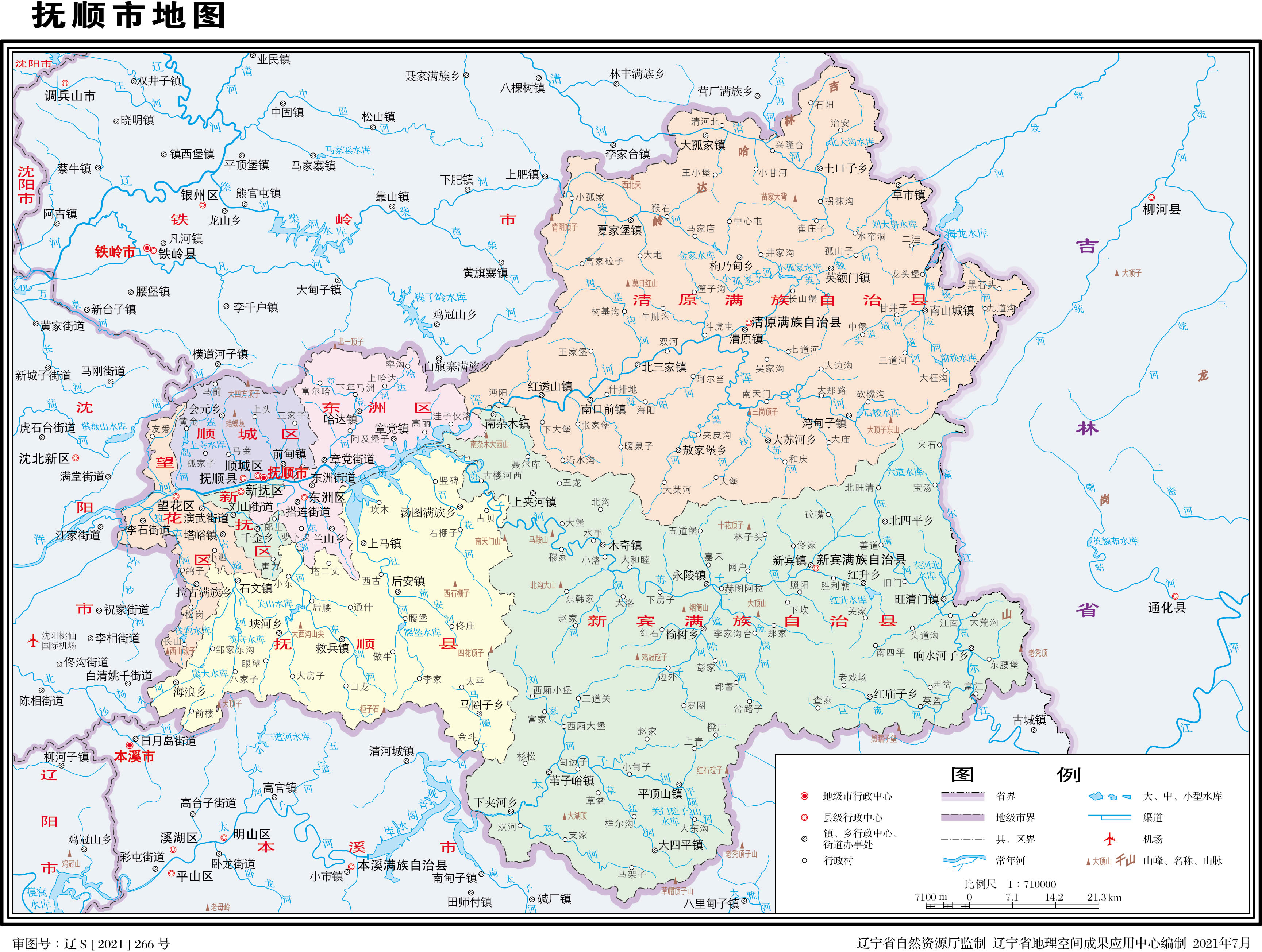 撫順市轄4個市轄區(qū)、1個縣、2個自治縣: