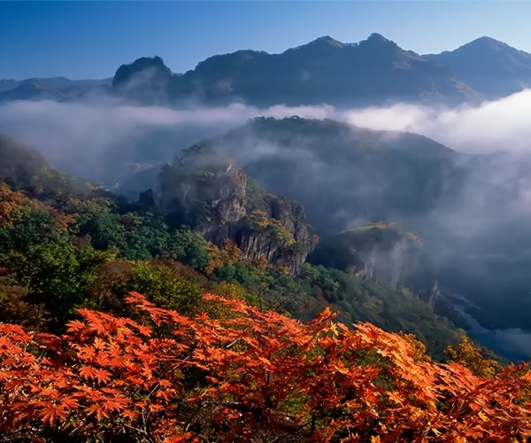 關(guān)門(mén)山位于遼寧省本溪縣南部,自古就有“東北黃山”、“東北桂林”之美譽(yù)。因雙峰對(duì)峙,一闊一窄,一大一小,其狀如門(mén),故稱關(guān)門(mén)山。