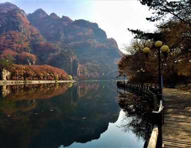 這里的主要景點(diǎn)有碧波蕩漾的五彩湖、陡峭秀麗的寶塔峰,栩栩如生的雄獅鎮(zhèn)岳等等。五彩湖,它是98年修建的一個(gè)人工湖,平均水深3.6米,最深處可達(dá)7.5米,為什么叫五彩湖呢?每到秋季,黃的柞樹(shù)、綠的青松、紅的楓樹(shù),它們的倒影映襯在水里邊,呈現(xiàn)出五彩繽紛的顏色,故比得名五彩湖。