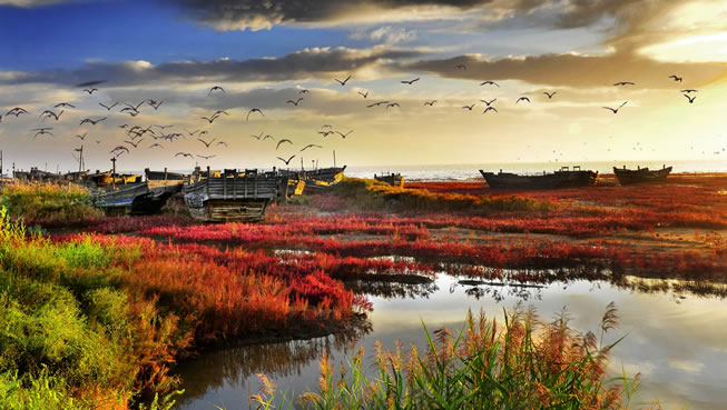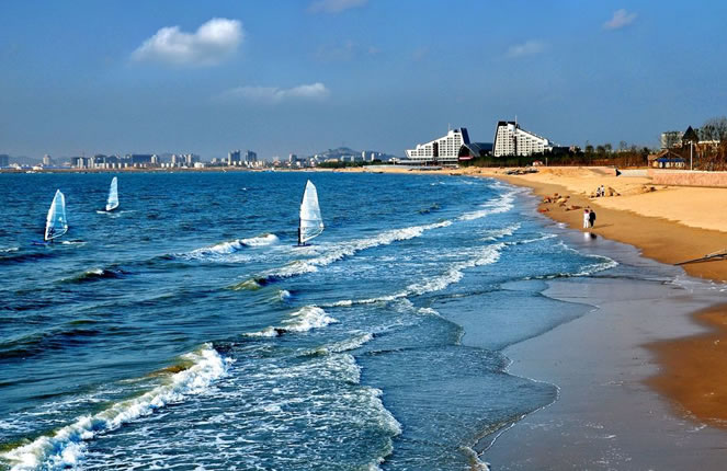 白沙灣黃金海岸(國家AAAA級風(fēng)景旅游區(qū))地處蓋州市歸州辦事處、九壟地辦事處西部,全長14.7公里,距蓋州市區(qū)46公里,距高速公路(熊岳站出口)8公里,濱海公路貫穿園區(qū)。面臨渤海,以海域風(fēng)光為主,海岸蜿蜒,沙灘細(xì)軟,形如新月,景色壯麗。白沙灣是一個在綠樹掩映之下的海濱浴場,人稱“東北第一灘”。