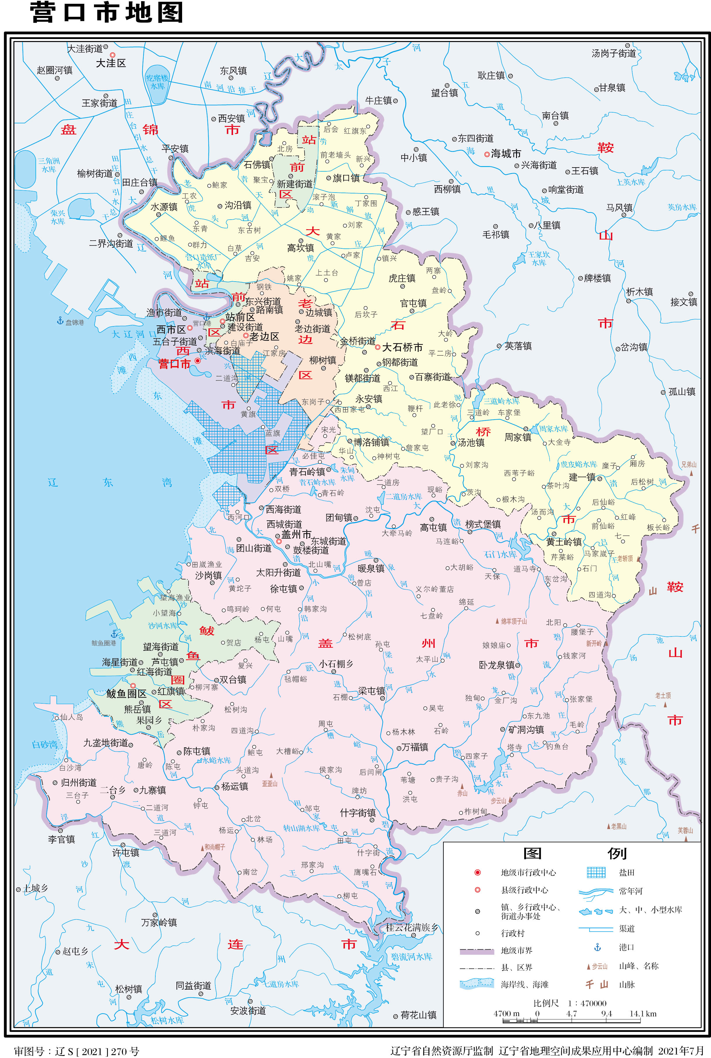 營口市轄4個區(qū),代管2個縣級市: