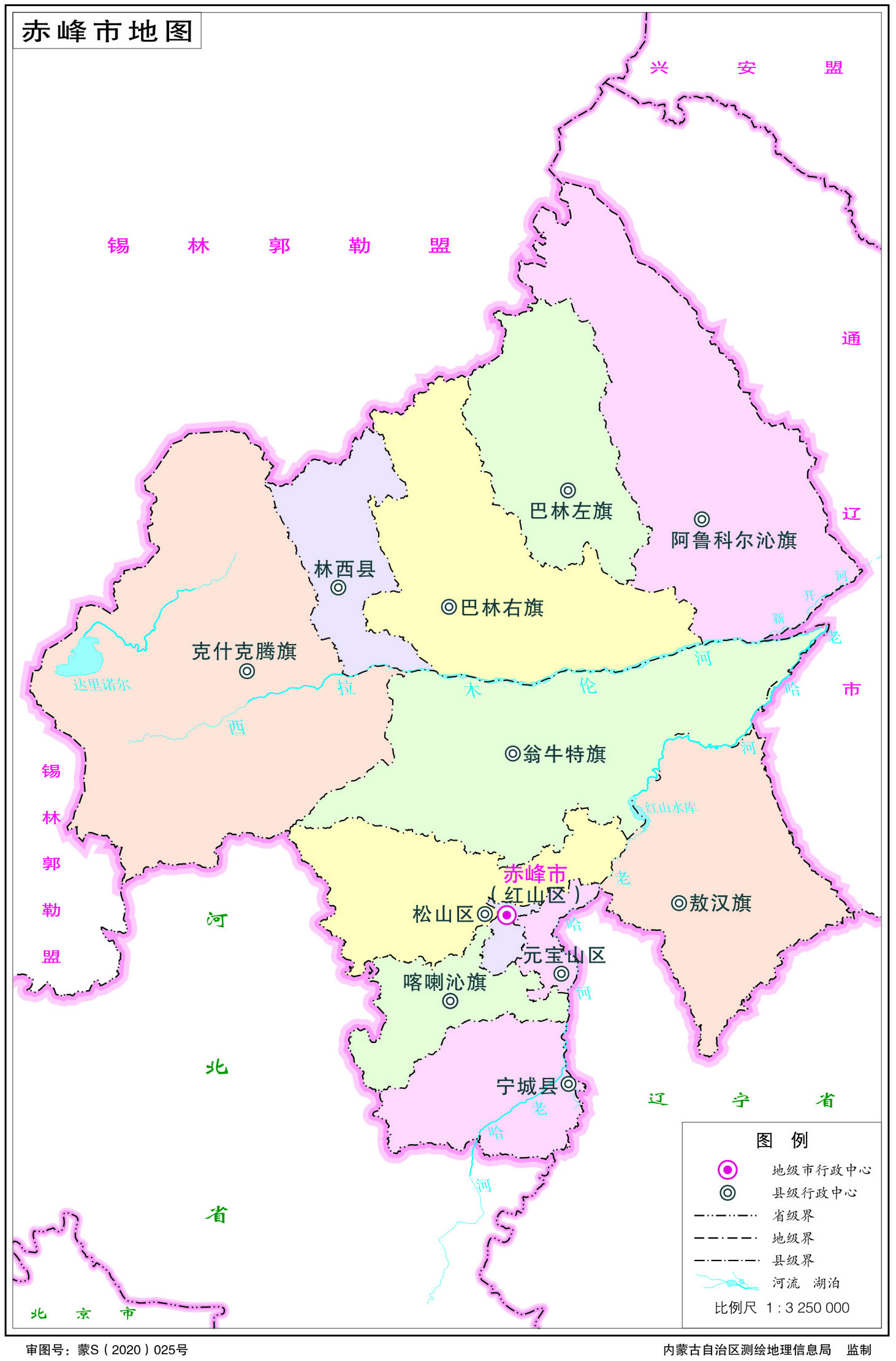 赤峰市轄3個(gè)市轄區(qū)、2個(gè)縣、7個(gè)旗: