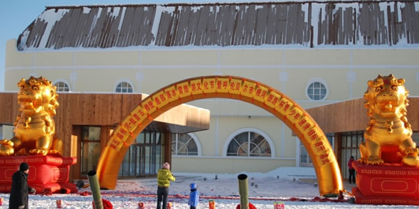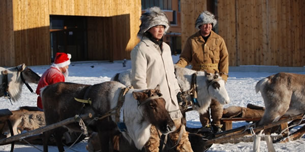 敖 生態(tài)環(huán)境 這里是森林與草原的界線,大興安嶺和呼倫貝爾大草原在這里交匯,一邊是草原、河流,一邊是森林、山崗,空氣新鮮,野味十足,當?shù)厝税氘斦娴恼f"這地方絕對沒有污染,連蒼蠅、蚊子都是綠食食品"。 國家給敖魯古雅鄉(xiāng)人建立了定居地,但馴鹿只能生活在森林里,所以除了在定居點的部分村民,密林中還散布著五個馴鹿站,最遠的在150公里。過去,敖魯古雅人養(yǎng)馴鹿只是作為運輸工具,一頭馴鹿可以負重35公斤左右,每小時可以行走5公里,1964年,取得了割鹿茸成功,F(xiàn)在,馴鹿已經(jīng)不大用來運輸了,而成了當?shù)厝说闹饕?jīng)濟來源,中國唯一的這群馴鹿大約只有10000只左右了。 敖鄉(xiāng)民俗村 敖魯古雅鄂溫克民俗村位于根河市西郊,南臨S301國道,交通十分便利。民俗村總建筑面積58,700平方米,是集大中型會議、休閑度假、民俗展示、娛樂為一體的綜合性旅游度假村,是一處自然——人文旅游 景觀。 民俗村依托森林、河流,鄂溫克獵民的民俗民風,推出一系列具有地方特色的旅游活動項目:主要有森林觀光、探險、模擬狩獵;觀民族宗教、歌舞、民俗表演;品嘗民族風味餐、參觀敖鄉(xiāng)新居、訪獵民等活動;村內(nèi)建有木質(zhì)別墅式的游客服務中心,民俗文化博物館、民俗表演平臺、表演廳和餐廳、反映鄂溫克獵民歷史的圖騰廣場、有四十、五十、六十年代不同的撮羅子,有上山索道車、木橋和四處風格獨特的獵民點;還有民俗表演隊和馴鹿車穿行其中,可對敖魯古雅鄂溫克獵民的歷史、文化、宗教、習俗進行了充分的展示。 敖魯古雅鄉(xiāng)距離我國最北端的漠河縣約一百公里左右的路程,位于大興安嶺深處的滿歸林區(qū)。這里氣候十分寒冷,記者走在蜿蜒的山路上,腳下的積雪發(fā)出“咯吱咯吱”的脆響,眼前已是呵氣成冰,身上的棉襖凍得硬梆梆的。隨行的鄉(xiāng)黨委書記鮑玉林說:“現(xiàn)在大約是零下30攝氏度,你們趕上好時候了,往年這個時候得有零下五十度,外面到處冒白煙。” 敖魯古雅鄉(xiāng)有一條主干道,長不過二三百米。道兩邊是整齊的幾排木刻楞房和磚瓦房,象征著主人的富裕程度。敖鄉(xiāng)雖小,卻擁有自己的博物館、學校、文化站和小商店。春節(jié)雖過,但喜慶氣氛尚濃,白雪映襯下,墻上的大紅對聯(lián)分外惹眼。 敖鄉(xiāng)生活著近500人,其中鄂溫克人大約有230人。他們現(xiàn)在已經(jīng)是獵民定居后的第三代了。在離此50到100多公里的山林中,還有四個獵民點,生活著30多名習慣于打獵和在山上飼養(yǎng)馴鹿的老獵民們。