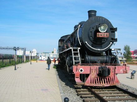 建成于2004年6月。陳列在這里的是一臺1940年日本制造的“亞西亞”型蒸汽機車,機車下面的鐵軌是1925年蘇聯(lián)制造的43鐵軌,這臺機車在中華大地上奔馳了半個多世紀,演繹了生命里程的“三部曲”,留下了許許多多鮮為人知的故事。建國初毛主席就是乘座這臺機車牽引的火車出訪蘇聯(lián)的。機車號是 “1861”,“18”代表的是滿洲里到俄羅斯后貝加爾斯克的距離,即18里!61”是代表毛澤東在滿洲里期間,曾對駕駛這輛火車頭的司機長說過六句話:一定要與蘇聯(lián)同志搞好友鄰關(guān)系,一定要注重少數(shù)民族地區(qū)的相互團結(jié),一定要保障軍用列車的安全,一定要多學(xué)文化,一定要克服天氣寒冷帶來的困難,一定要注意身體。毛主席回國后,向全國人民發(fā)出了建設(shè)社會主義新中國的偉大號召。從1950年到1965年,這臺機車歡快地馳騁在祖國建設(shè)的鋼鐵運輸線上,立下了不可磨滅的功勛。因此,滿洲里人民又命名它為“滿洲里號”。