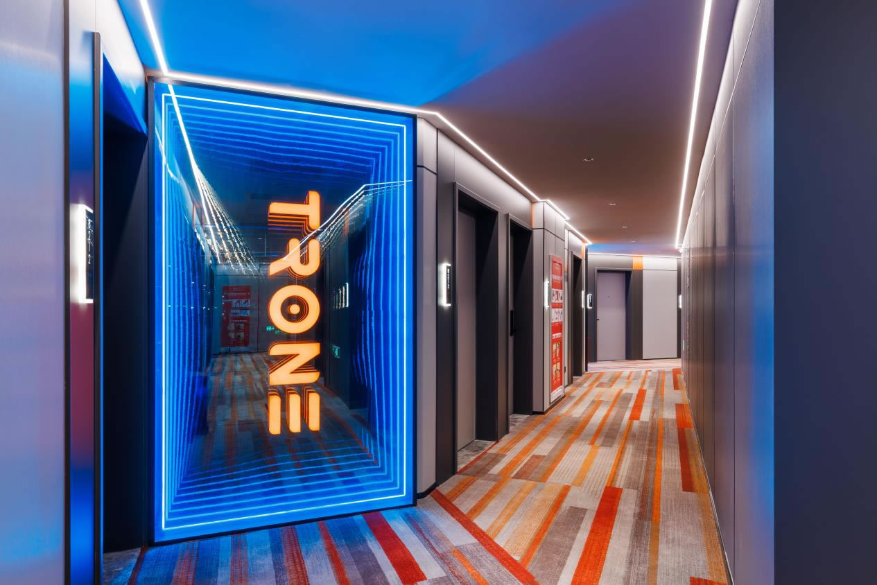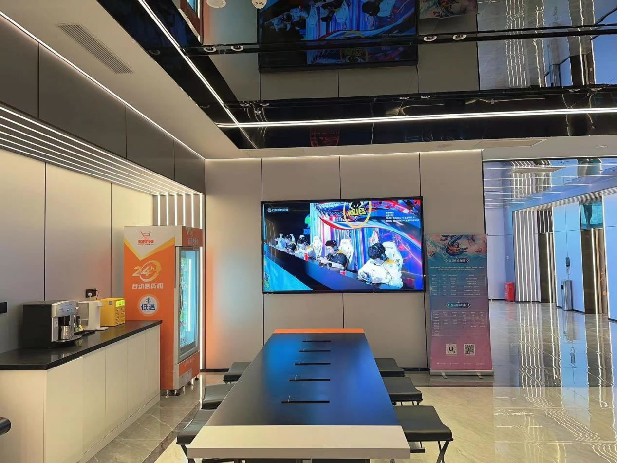 為提高玩家觀看比賽的趣味性,營造賽事討論的刺激氛圍,滿足玩家社交娛樂需求,門店特意在酒店大廳放置100寸屏電視,中庭上方設(shè)計(jì)200寸大投影屏,身處房間即可觀賽,音頻直連房間內(nèi)音響,無論你是在房間還是大廳,都能享受大屏看比賽的快樂!