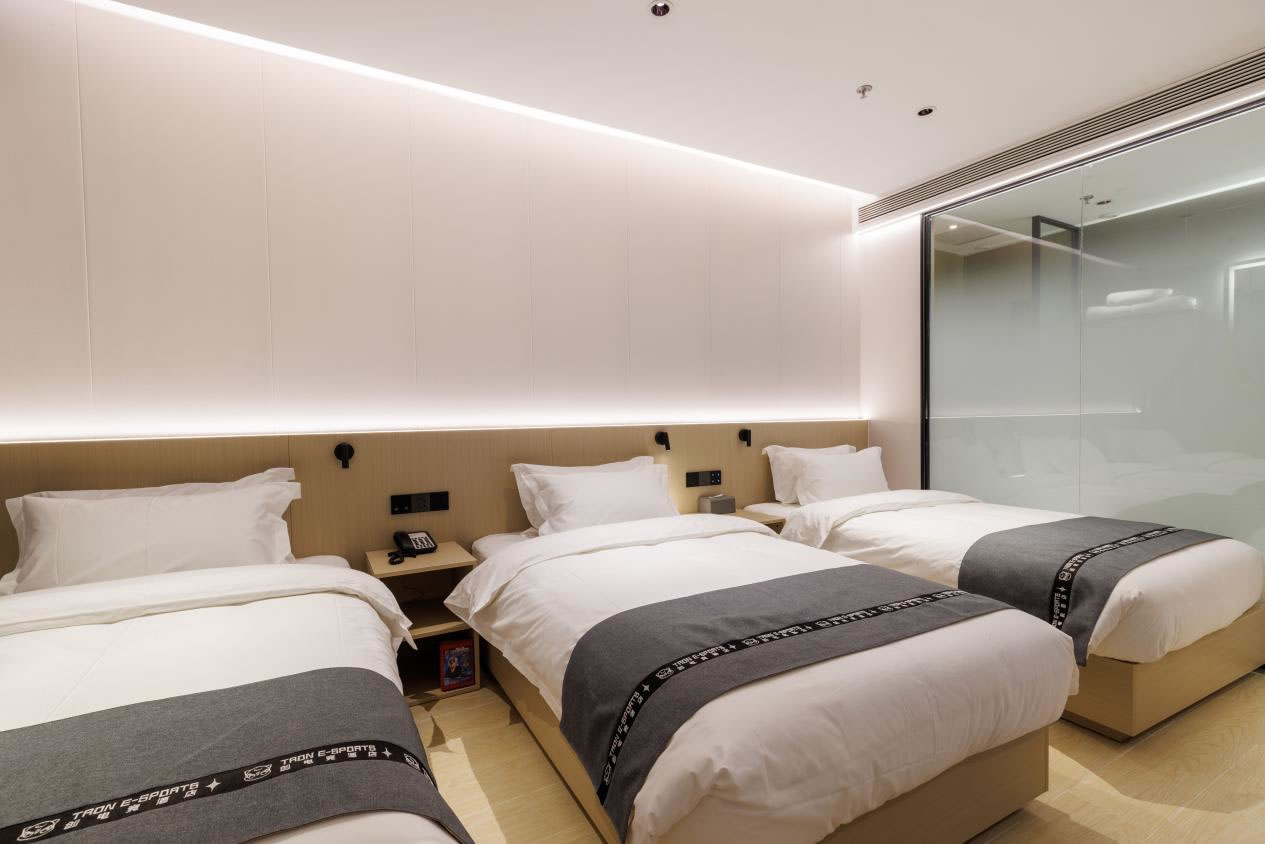 創(chuàng)電競智慧酒店3.0(北京房山良鄉(xiāng)大學(xué)城店)酒店房型種類豐富,配備了電競大床房、電競雙床房、電競?cè)碎g、電競四人間、電競五人間等不同房型,共計(jì)70個房間,最多可容納 161人。無論是獨(dú)俠競技、閨蜜體驗(yàn)、情侶暢玩、還是兄弟開黑,創(chuàng)電競都能滿足需求。