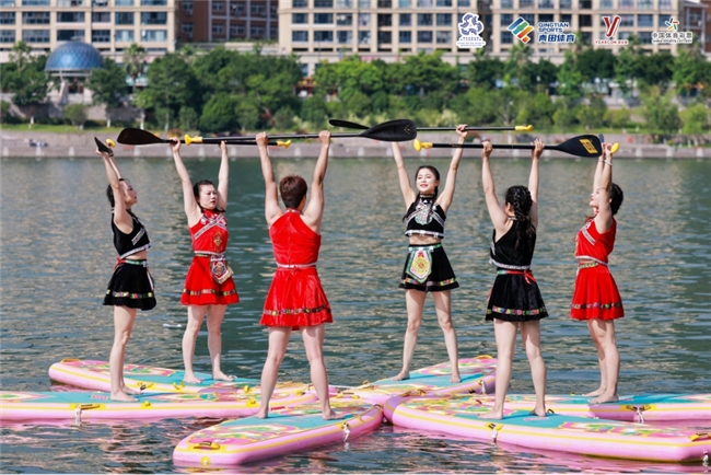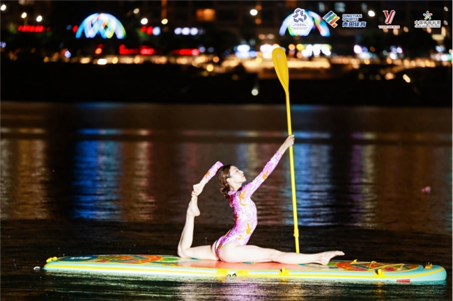 前屈、后彎、扭轉(zhuǎn)、平衡、倒置……音樂與動作和諧統(tǒng)一,身體與槳板融為一體。參賽隊員們展示的不僅是控制身體的力量,更是人與自然、美與健康的完美結(jié)合,圍觀群眾不時給予陣陣掌聲。